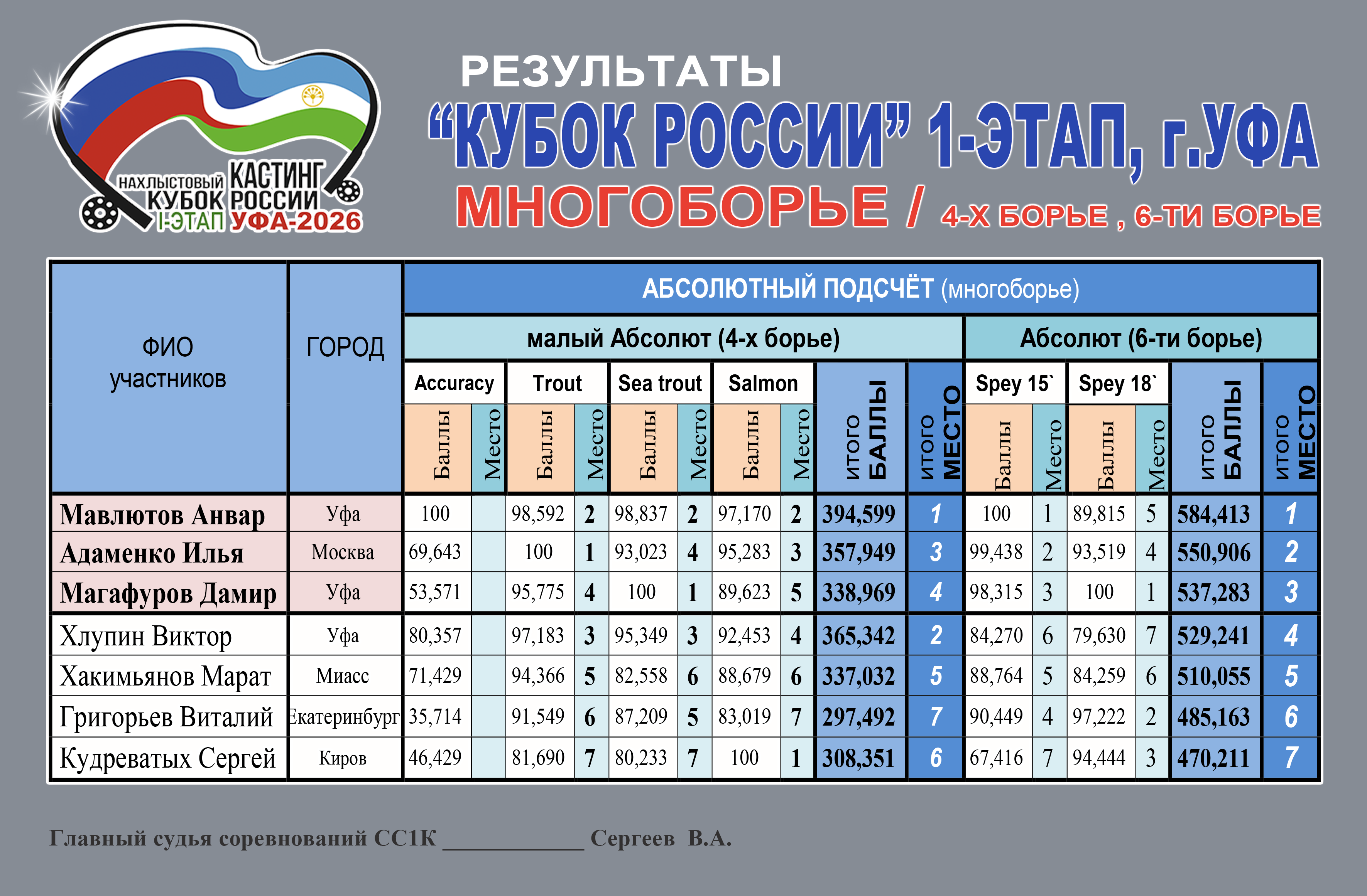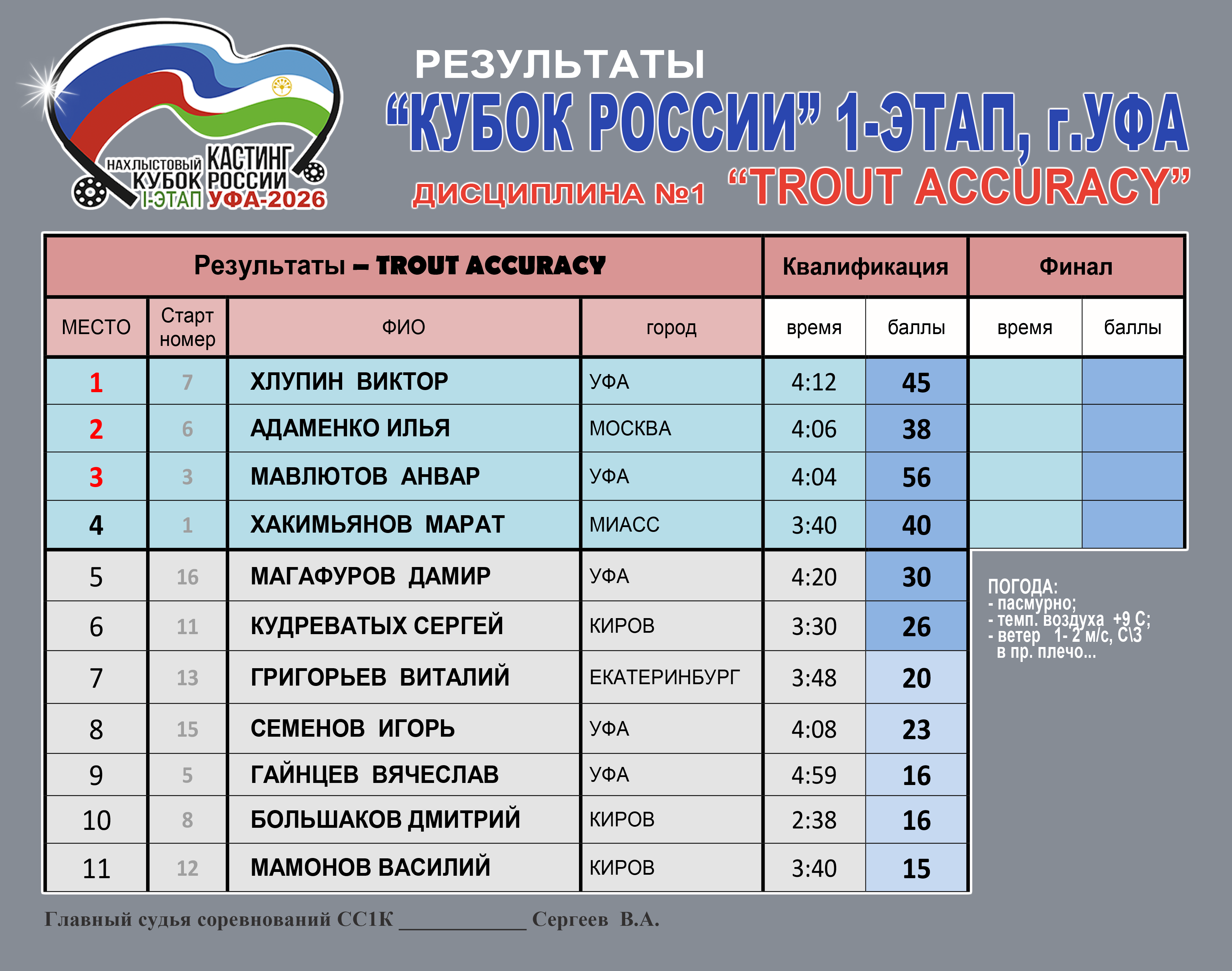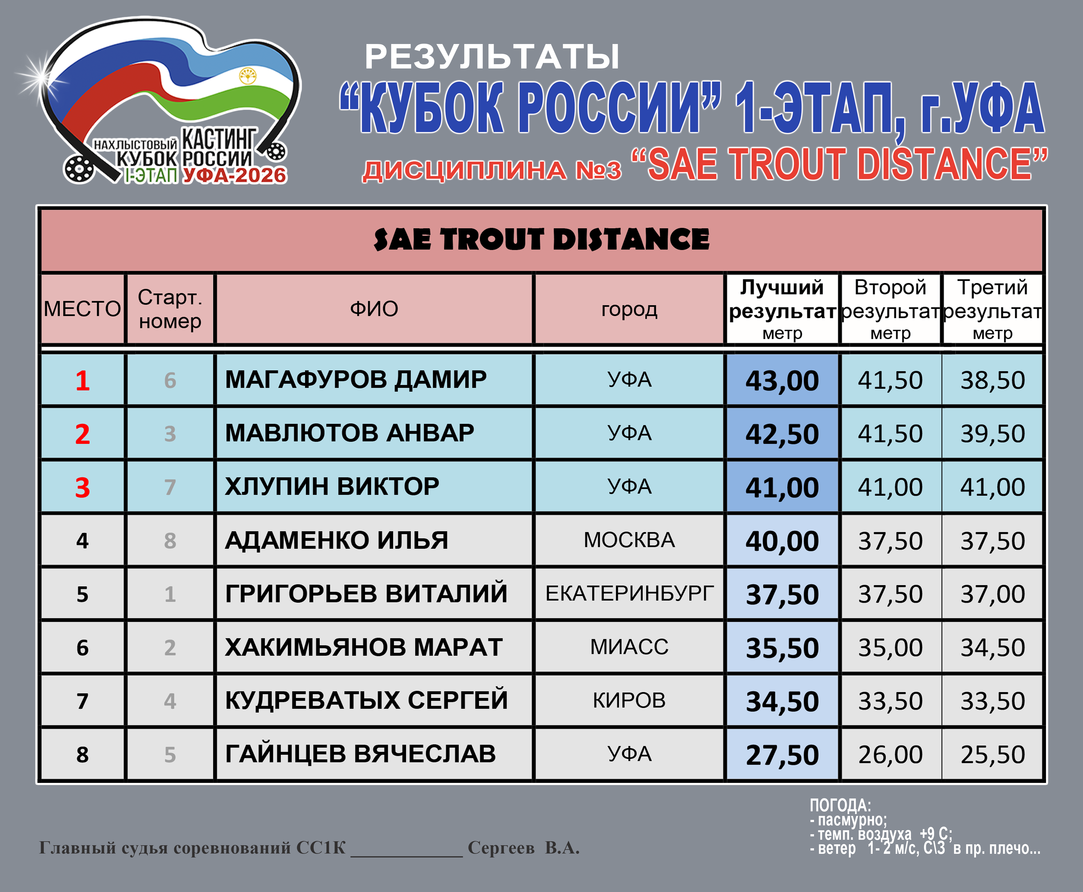 1-этап УФА. Чемпион «Кубок России-2026г. 1го этапа» Мавлютов Анвер. Магафуров Дамир (Бронза), Мавлютов Анвер (Золото), Адаменко Илья (Серебро)